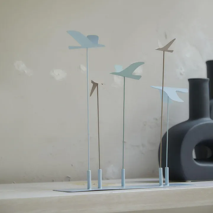 夕暮れに空を羽ばたいていた、渡り鳥のような大小さまざまなサイズの鳥が羽ばたくオブジェ。 紙のように折り曲げただけのシンプルなモチーフ。 バランスよく配置すれば鳥が列をなして飛んでいく姿を演出することができます。 ※ブリキのアレンジメントスティックと差し替えることもできます。