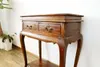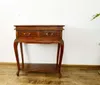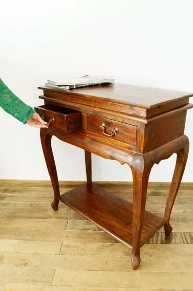 オールチーク材の丁度いいサイズのコンソールデスクが入荷しました☆ 2杯の引き出しと脚部に棚板を設置しておりますのでサイドボードとしてもご利用可能です! 壁面に背がピッタリと設置出来る様に製作されておりますので、 壁際のインテリア作りに大活躍します! もちろん背面もしっかりチーク材の無垢で製作されておりますので、 背面が見える場所での設置も可能です! お色はダークブラウンより少し明るいアンティークブラウンで仕上がっております。 お色の濃い家具の中に入っても違和感の無いカラーでございます! 無垢のチークの家具を是非!おすすめです♪ 【商品情報】 ------ サイズ 幅70cm 奥行35cm 高さ80cm 材質 チーク材 カラー ナチュラルブラウン 備考 送料無料商品(※沖縄県・一部離党地域を除く) 注意事項 最善の注意を払っておりますが、ナチュラル素材でハンドメイドの為、色合い、大きさ等、多少異なる場合がございますが、ご了承くださいませ。 またPCディスプレイの性質上、実際の色と異なって見える場合がございますので予めご了承ください。