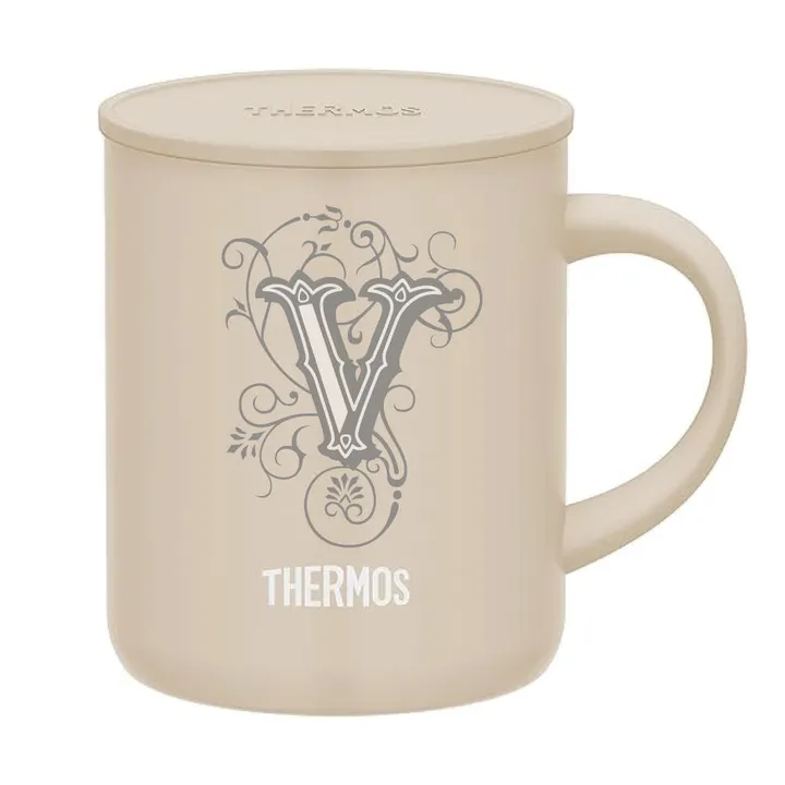 【イニシャル彫刻】サーモス 保温保冷 蓋つきマグカップ 350ml クリスタルストーン付 イニシャルV