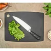 木の繊維を合成した素材を使用している耐久性に優れたカッティングボードです。表面は非多孔性で細菌が侵入しにくく、薄型なので食材を切ってそもままお鍋にサッと入れることができます。水切れがよく、お手入れも簡単で食器洗浄機にもお使いいただけます。毎日のお料理作りだけでなく、盛り付け用のボードとしても大活躍!端に穴がついているのでフックにかけて収納いただくことも可能です。