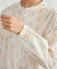 KNGC625・綿100%ストライプ風ボタニカル柄ナチュラルテイストプリント長袖ブラウスシャツ YELLOW/M