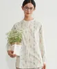 KNGC625・綿100%ストライプ風ボタニカル柄ナチュラルテイストプリント長袖ブラウスシャツ GREEN/M
