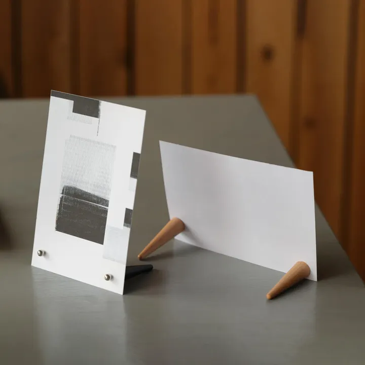 カードや写真をマグネットボールで挟むだけで簡単に飾れるフォトスタンドです。 小さな丸いマグネットボールは飾るものの邪魔をせず、ピノキオの鼻のようなスタンドがスタイリッシュ。 ※カードは付属しません。