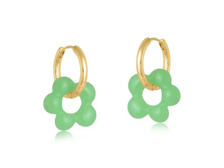 2964 オリンピアビーズハギーフープピアス Green