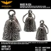 アメリカ製ガーディアンベル社製ガーディアンベルです。 MADE IN USA アメリカ製 交通安全 魔除け 御守り ガーディアンベル アメリカのライダーの間には、事故や、転倒の原因は「道路にひそむ悪魔」によるいたずらだという伝説があります。悪魔は走る者に悪戯やトラブルを運んできます。このベルは美しい音色で悪魔たちを追い払うと言われ愛されています。そんな悪魔のいたずらを防ぎ、御守りとなるのが、守護者のベルという意味を持つガーディアンベル。 日本でも鈴の音(ね)は神道では魔除けの音と言われています。ピューター製の鈴でいい音色でガーディアンベルはデザインも様々あります。 またガーディアンベルにまつわる伝説として、プレゼントとして送られたベルの効果は、自分で手に入れたものの2倍になると言われています。 それゆえに彼氏・彼女・友達・家族へのプレゼントとしての人気も非常に高まっています。 シルバーアクセサリーのようにおしゃれに装着できて素敵な音色を奏でるガーディアンベル。 バイカー以外にも自転車や旅・交通安全のお守りとしてお使いいただけます。 カバン・ランドセル・キーホルダー・ペットの首輪等に付けてお使いください!! ※タイラップ等でバイクのフレームにも簡単に取り付けできます。 アメリカンモデルだけではなく、旧車ファン、レプリカライダーまで、さらにバイクだけでなく、自転車や車にもピッタリな御守りとなっています。 アクセサリーとしても人気で、アイディア次第で車体だけでなく、キーホルダーや鞄など、どこにでも付けておしゃれに楽しめます。