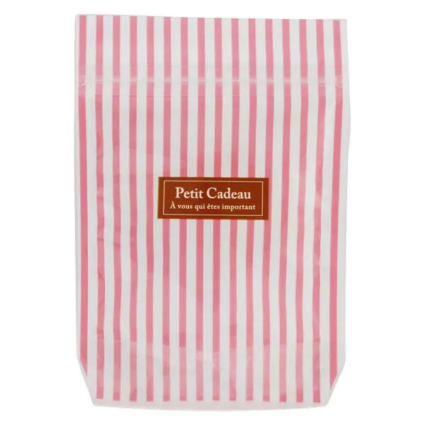 【ZIP POCKET (S) stripe pink 】 ●マチ付きで、小物や「食品を直接入れる」ことも可能な  ジップポケット(Sサイズ)。  ●Mサイズ … 18柄 、Sサイズ … 14柄 の展開で、お得な5枚入りです。 ●おもてが透明なので、中に入れたものが見えます。 ●こちらの商品は食品を直接入れていただけます。 (食品衛生法の規格基準に適合しています)
