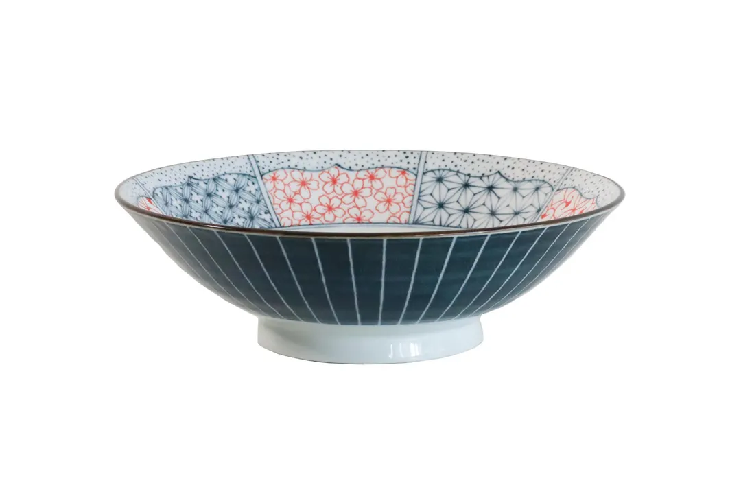 Japanese traditional patterns.~日本の伝統なる文様の一皿が魅了する。~ 「瓔珞」とは吉祥を表す絵柄。古代インドの上流階級の人々が身に着けた珠玉や貴金属を編んだ装身具で、それを用いた文様のことを瓔珞といいます。 イングレーズという絵付方法で、釉(うわぐすり)の上に絵付をして焼くことにより、釉の中に絵柄が染み込みます。 絵柄の剝がれがなく、鉛・カドミウムなどの有毒物質が出ません。安心してお使いいただけるアイテムです。 ひやむぎや冷麺、冷やし中華など定番の麺料理の盛皿としてや、チャーハンやサラダボウルとしてなどにもぴったりな丼ぶりです。蕎麦やうどんなどの麺鉢、ラーメン鉢、汁気の多い煮込み料理の盛り付け皿、煮物の盛り鉢としても毎日お使いいただけます。