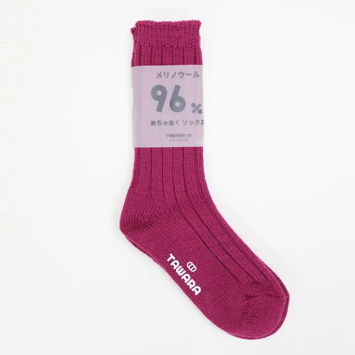 ウール96% 超ローゲージリブ クルーソックス【1Pソックス】 【レディース】 カラー:25 ローズピンク サイズ:S(22.5~24.5cm)