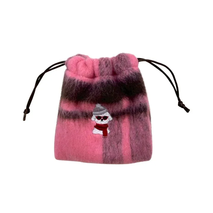 可愛い色味のチェック柄巾着に今季のポワルモチーフを刺繍しました。小物入れとしてお使いいただけます。