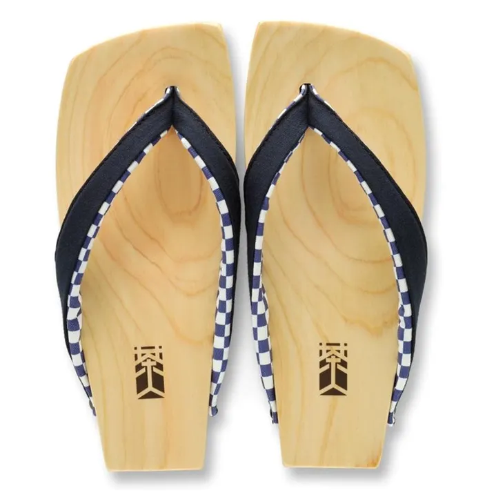 しずおか産ひのきの木目が美しく個性的。 自分だけの下駄を育てていく楽しさを味わえます。 決して同じ木目(柄)が無いのが天然木の特徴。一期一会をお楽しみください。 ツートンの鼻緒は見た目も涼し気。裏生地は市松模様で日本らしさを感じて頂けます。 【お取り扱い上のご注意・鼻緒/裏生地】 ・生地に柄をプリントした製品になります。 ・水に濡れない様、ご注意ください。色落ち・色移りする場合がございます。万一濡れた場合は陰干ししてください。 ・長期間、日光などにあたりますと退色する場合がございます。 ・濃い色のものは、摩擦などで繊維、皮膚に移染する場合がございます。