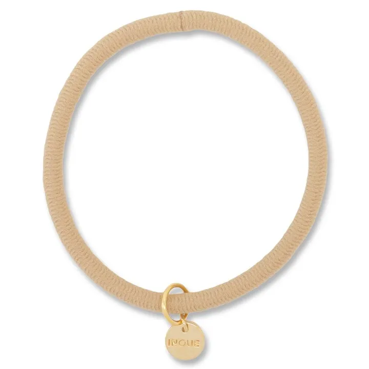 毛量が多く、キツめにしっかり結びたい方のためのヘアゴム 「ライトベージュ」は、花が咲き初めお出かけしたくなる季節にぴったりのカラー。明るい春服に合わせやすい、やわらかなカラー。淡い色でまとめても、コントラストをつけても、幅広く楽しめます。 ピッタリングMよりも太いので、毛量が多い方や、一つ結びやポニーテールでしっかり結びたい方におすすめです。ホールド感もバッチリなので運動するときにも安心してご使用いただけます。世界トップレベルで安全な繊維製品である認証「エコテックススタンダード100」を取得しているヘアゴムです。3歳未満の乳幼児が口に入れても問題ないほど、やさしい繊維素材で作られています。 オリジナルチャーム付きなので、手首につけても素敵にキラリ。うっかり机に置き忘れてもひと目で自分のものと分かります。 1本1本、手作業でゴムリングの接着加工をしています。金属のパーツでゴムをかしめているヘアゴムの場合は、髪の毛が引っかかると切れてしまいますが、当社の製品は、つなぎ目がほとんど分からず、髪の毛にも優しいです。 直径:約50mm、太さ:約4~4.5mm、プレートの直径:約8mm 材質:ナイロン・天然ゴム・真鍮 日本製