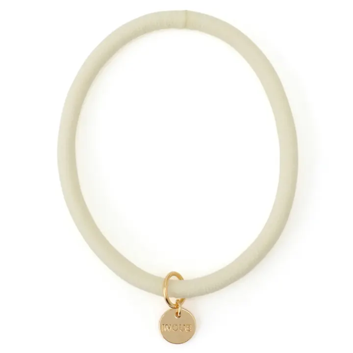毛量が多く、キツめにしっかり結びたい方のためのヘアゴム 「アイボリー」は、冬の寒い日にあわせたい優しくクリーミーなカラー。真っ白なセーターの差し色として、真っ黒なコートと合わせて2トーンにも。落ち着いた色が多くなる冬の装いに、華を添えます。 ピッタリングMよりも太いので、毛量が多い方や、一つ結びやポニーテールでしっかり結びたい方におすすめです。ホールド感もバッチリなので運動するときにも安心してご使用いただけます。 世界トップレベルで安全な繊維製品である認証「エコテックススタンダード100」を取得しているヘアゴムです。3歳未満の乳幼児が口に入れても問題ないほど、やさしい繊維素材で作られています。 オリジナルチャーム付きなので、手首につけても素敵にキラリ。うっかり机に置き忘れてもひと目で自分のものと分かります。 1本1本、手作業でゴムリングの接着加工をしています。金属のパーツでゴムをかしめているヘアゴムの場合は、髪の毛が引っかかると切れてしまいますが、当社の製品は、つなぎ目がほとんど分からず、髪の毛にも優しいです。 直径:約50mm、太さ:約4~4.5mm、プレートの直径:約8mm 材質:ナイロン・天然ゴム・真鍮