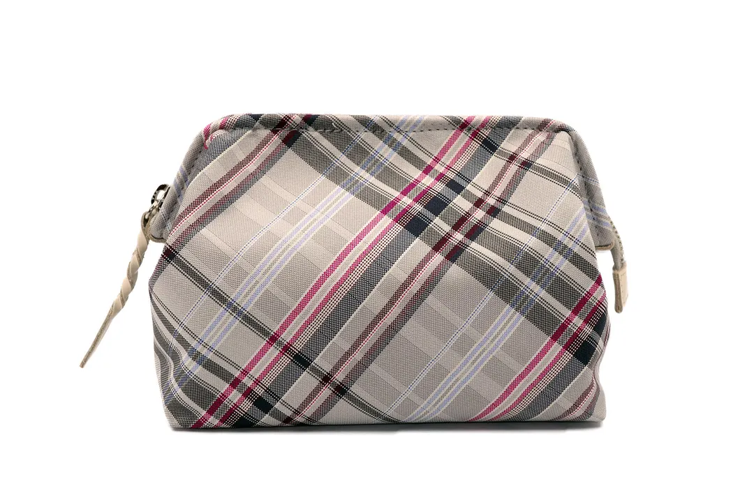 がばっと開くコスメポーチ/撥水加工・西陣織シルク・ファスナーポーチ・マルチチェック・レディース・日本製 ローズピンク