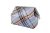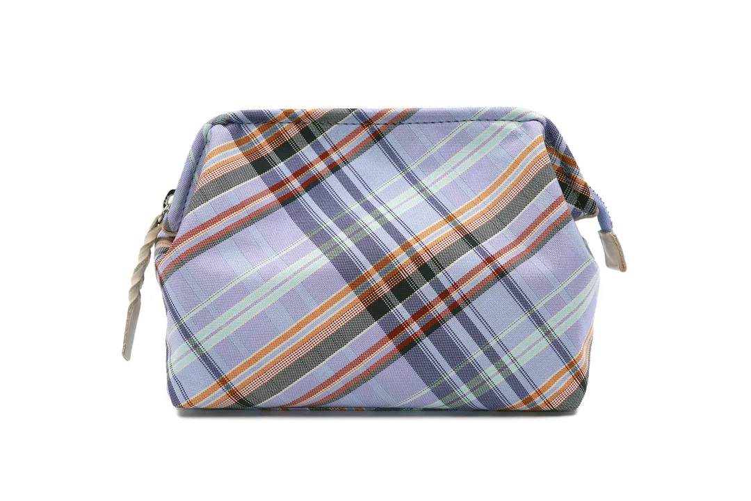 がばっと開くコスメポーチ/撥水加工・西陣織シルク・ファスナーポーチ・マルチチェック・レディース・日本製 スカイブルー