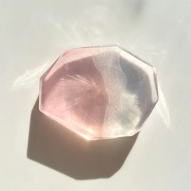 「実用性×美しさ」 唯一無二の植物由来ハンドソープ アゲート石鹸 ― 宝石のように輝く、特別なひとときを演出 ― プチギフト・ノベルティ・推し活に! アゲート石鹸はこれまでに、席札・プチギフト・ノベルティとして、累計980000個お作りしてきました! 特別な日の演出や、大切な方へのおもてなしにぴったり。 使っても飾っても気分が上がる、特別な日のためのYURAMの宝石石鹸。ぜひ、大切な方への贈り物にお選びください。 ◇唯一無二のデザイン&贅沢な使い心地 ・YURAMオリジナルカラー&カットで、まるで宝石のような美しい仕上がり ・洗った瞬間、お花の香りが広がる贅沢なハンドソープ ・グリセリン配合でお肌をしっとりと保湿 ・泡立ちが良く、キメ細かい泡でやさしく洗浄 ◇国内製造・手づくり石鹸 ・国内産植物由来の原料を使用し、お肌に優しい処方 ・小田原の自然豊かな工房で、一つ一つ手づくり ◇カラー&香り ローズクォーツ(ローズの香り) ピンク&クリアのカラーに、シルバーラメが華やかで愛らしく、上品なデザインです。 ピンクはみずみずしいピンクのバラをイメージし、シルバーラメは、神秘的な天の川銀河をイメージしました。 ローズの香りは、夜明けの庭に咲き誇るような少し甘く気品のある香りです。 【お届けについて】 ・石鹸は透明フィルムに包んでお届け ・香り・使用用途・成分表の説明書を同封