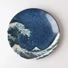 【中皿】富嶽三十六景のうつわ 神奈川沖浪裏 プレート 美濃焼 青富士