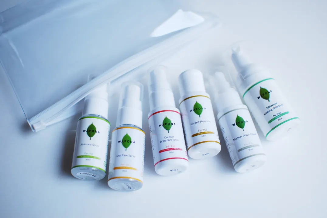 『ご旅行やギフトにぴったり!』 WAFONAシリーズ犬用6種類のミニボトルセットです。 ご旅行やWAFONAを初めて使われる方のお試し用としておすすめです。 防災用バッグにも入れておけば、いざという時の備えとしても。 30mlのミニボトルが6本、ビニールポーチの中に入っています。 〈内容量〉 【犬用】オールインワンスプレー30ml オーラルケアスプレー30ml アウトドアボディケアスプレー30ml 自然派シャンプー30ml 【犬用】食器用洗剤 30ml マナーウォーターリキッド30ml 〈使用上の注意〉 ペットの体質に合わない場合は使用を中止してください。 開封後はできるだけ早くお使いください。 直射日光に当たらない涼しい場所で保管してください。 ========================= ▶【犬用】WAFONAオールインワンスプレー WAFONAオールインワンスプレーは愛犬が「舐めること」「毎日使うこと」を前提に、化学合成物質を一切使用せず、108種類の植物エキスと、不純物を取り除き、クラスターを極小化した純水のみを配合して作られています。 植物由来の天然成分が気になるニオイをすっきりさせ、浸透性の高い水が皮膚・被毛を保湿し、愛犬の健康維持をサポートします。 1本で全身のケアから、おそうじまでお使いいただけるスプレーです。 〈成分〉 108種天然植物エキス・落葉ブナ葉エキス・デキストリン・ポリフェノール・カテキン・アミノ酸・各種ビタミン・各種植物吸収ミネラル 〈製品特徴〉 飲用水適合検査に適合しています。(第53-18-04433号) 植物(フィトンチッド)の力で愛犬の健康維持のサポートをします。 化学合成物質は一切使用していません。 〈使用方法〉 愛犬の体にスプレーした後、マッサージするようによく揉み込んで、浸透させてください。 その後タオル等で拭き取り、ブラッシングをして仕上げてください。 耳元・目元・口周りはコットンやティシュ等にスプレーを含ませ、優しく揉むように拭いてください。 トイレ周り、ケージの中、粗相の後、車の中の生活空間にもお使いいただけます。 ▶WAFONAオーラルケアスプレー WAFONAオーラルケアスプレーはペットの口内の健康維持をサポートするスプレーです。 天然植物エキス108 種類をベースに、ニーム・クロロフィル等を配合し、愛犬のクリアな息と口内の健康維持をサポートします。 口内に直接スプレーしたり、コットンや歯ブラシに含ませて、歯磨きやお口のマッサージにお使いください。 〈成分〉 天然植物エキス108種・落葉ブナ葉エキス・ニームエキス・クロロフィル・デキストリン・ポリフェノール・カテキン・アミノ酸・各種ビタミン・各種植物吸収ミネラル 〈製品特徴〉 飲用水適合検査に適合しています。(第53-18-04433号) ニームエキス、クロロフィルがお口の環境を整え、 植物(フィトンチッド)の力で愛犬のお口の健康維持をサポートします。 化学合成物質は一切使用していません。 〈使用方法〉 お口の中に直接スプレーしたり、 歯ブラシにスプレーして歯を磨いてください。また、コットンやティッシュ、キッチンペーパー等にスプレーを含ませ、歯茎のマッサージにも。 ▶WAFONAアウトドアボディケアスプレー WAFONAアウトドアボディケアスプレーは蚊やノミ・ダニなどが活発な季節に愛犬・愛猫の皮膚・被毛をガードするためにお使いいただくスプレーです。 ニームの力で200種類以上の害虫から愛犬・愛猫をガードし、フコイダンが潤いを与え、皮膚・被毛を紫外線から守ります。 ノミ・ダニ・その他害虫に対して約6時間、紫外線予防として約3時間効果が持続します。ノンアルコール・無香料なので飼い主様も一緒に安心してお使いいただけます。 愛犬・愛猫の全身にスプレーし、よく馴染ませるようにしてお使いください。 顔まわりやお腹周りなど、デリケートな部分は、手にスプレーを出してから直接手で馴染ませるようにしてお使いください。 〈成分〉 フコイダン・ニームオイル・パインオイル・トールオイル・サジー・天然ミネラル 〈製品特徴〉 ニームのちからで 200種類以上の害虫から愛犬・愛猫をガードします。 ※ノミ・ダニ・その他害虫に対して約6時間効果が持続 モズクから抽出されるフコイダンが保護膜となり紫外線から愛犬・愛猫をガードします。 ※紫外線予防として約3時間効果が持続 アルコール・ディート(農薬系)は使用していません。 ▶WAFONA自然派シャンプー WAFONA自然派シャンプーは7種の植物エキスを使用した、低刺激・無香料の愛犬・愛猫用のシャンプーです。 7種の植物エキス(ノバラエキス、甘草エキス、スギナエキス、マツエキス、ホップエキス、レモンエキス、ローズマリーエキス)とアミノ系洗浄剤を配合しています。 愛犬・愛猫はもちろん飼い主様の肌にもやさしい弱酸性の泡でしっかり汚れを落とし、植物性セラミドのちからで皮膚・被毛を保湿します。 一本でふんわりつややかに仕上がるので、リンスやトリートメントは不要です。 香料は使用していません。 〈成分〉 水・オレフィン(C14-16)・スルホン酸Na・