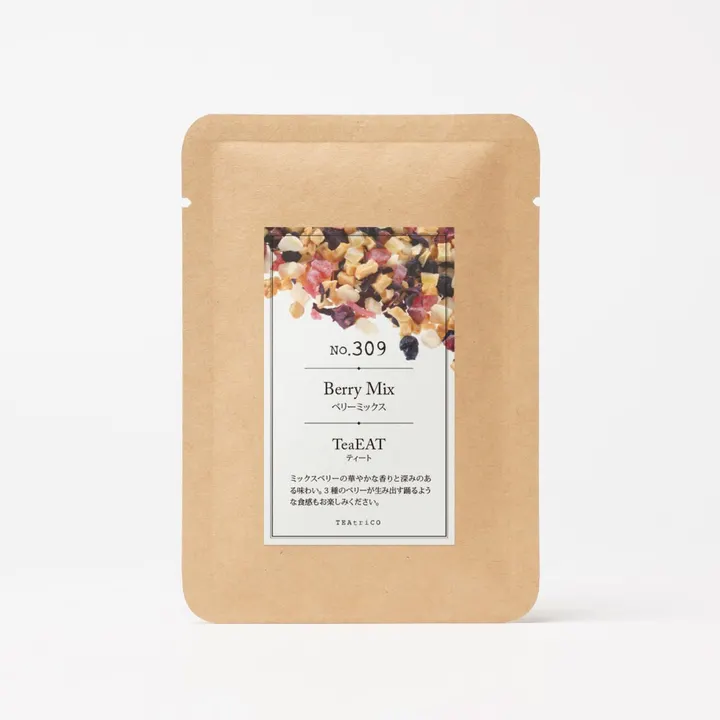 ドライフルーツとハーブで出来た食べられるフルーツティー。 ティーポットが無くても茶葉をカップにいれてお湯を注ぐだけで、簡単に作ることができます。 茶葉は全てお召し上がりいただけるので、ヨーグルトのトッピングやワインにつけてサングリアにするなど、様々なアレンジをお楽しみいただけます。 トライアルパックは1回分の10gが入っていて、茶葉を量る手間いらず。 パッケージを開けたら、そのままカップにいれてお湯を注げば完成です。 初めてティートをお試しいただく方におすすめのサイズです。