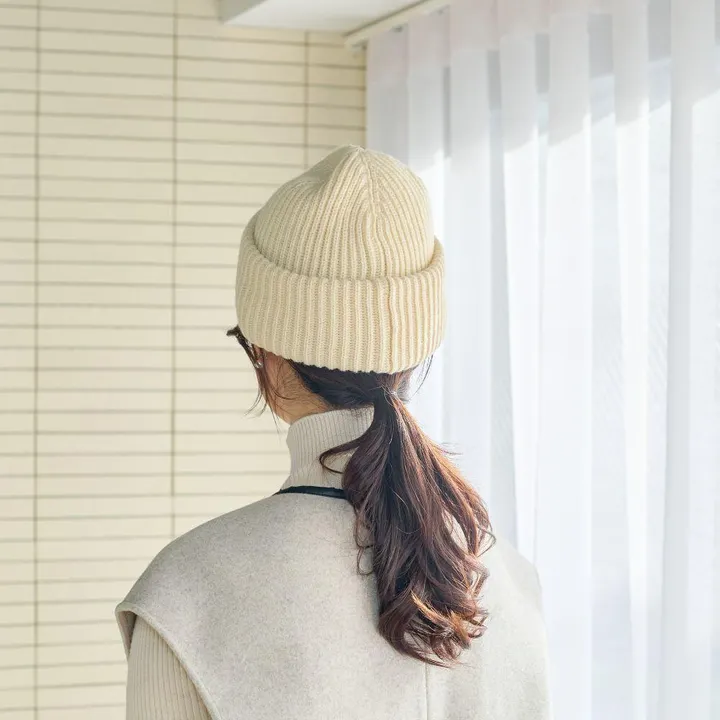 ニット帽┃2つ折りリブのほっこりニットキャップ IV(アイボリー)