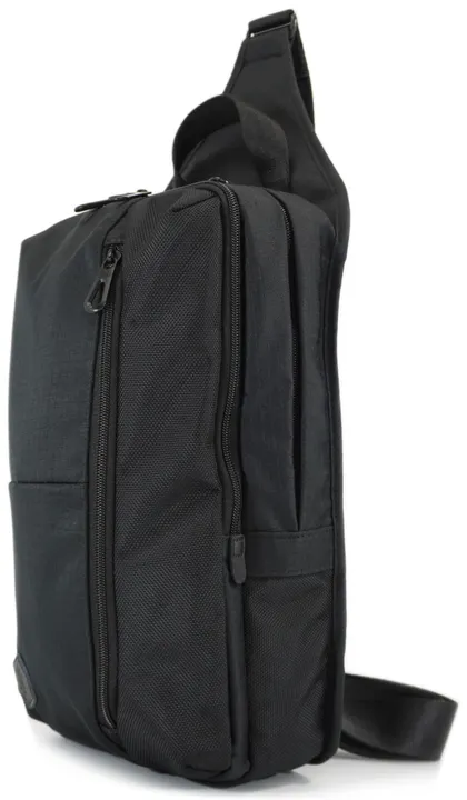 本体生地は同一色の糸で織ることによってナチュラルな表面質感に加え、ツイルを格子状に織り込んだ特殊なハイブリッド素材を採用。11インチタブレット収納可能なスリングバッグ。