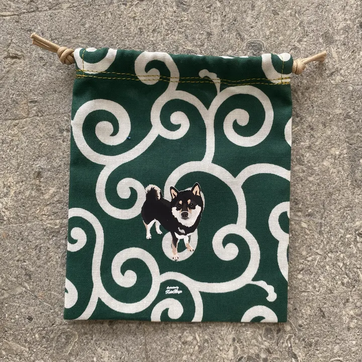 【Lサイズ巾着】 オリジナルイラスト わんこ巾着 プレゼントにも◎ 柴犬 - 黒柴 (約120×140mm)