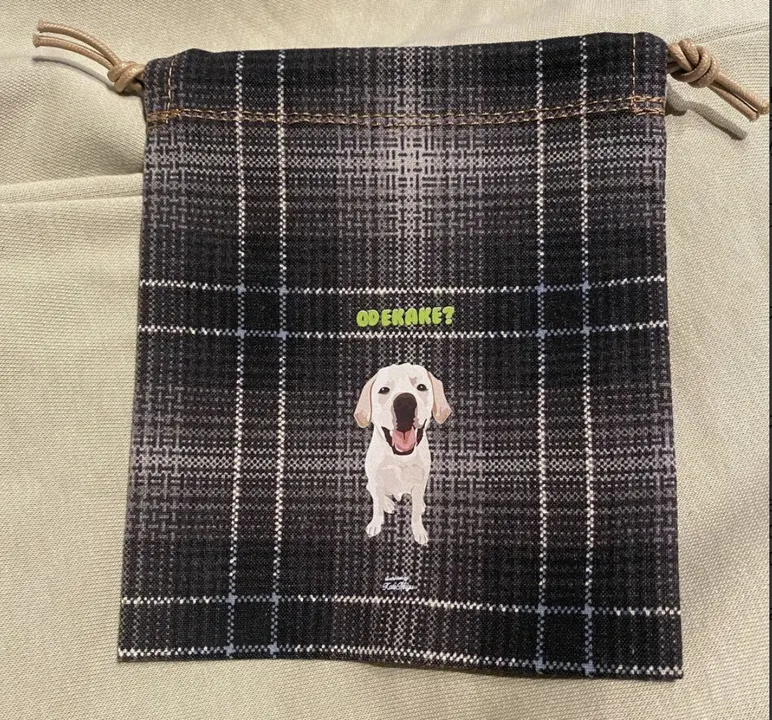 【Lサイズ巾着】 オリジナルイラスト わんこ巾着 プレゼントにも◎ ラブラドールレトリバー / チェック柄 (約130×150mm)