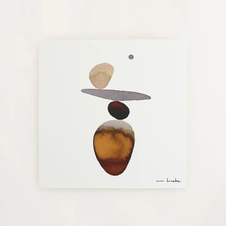 ※フレームは別売りです <デザイナープロフィール > ハシモトヒロコ / Hiroko Hashimoto 愛媛県出身、香川県在住の水彩画家。奈良芸術短期大学美術学科洋画コース卒業後、WEBデザイナーとしての経験を経て、2020年よりアーティスト活動を開始。水彩特有の滲みや透明感、色と色が干渉しあうことで偶発的に生まれる色の輪郭に魅了され、現在は地元を拠点に、個展を開きながら作品を発表している。 <About the Paper> 発色の良さと紙の風合いという相反する性質を高いレベルで両立させた高級印刷用紙で、FSC認証※も取得しているヴァンヌーボV-FSの最厚紙を使用。 ※FSC認証とは「森林の管理や伐採が環境や地域社会に配慮して行なわれているかどうか」を評価・認証し、そうした森林に由来する製品(適正管理された森林木材による製品)であることを証明するものです。運営は、NGOであるFSC(Forest Stewardship Council®:森林管理協議会 本部ドイツ)が行っています。 <サイズバリエーション> ・200×200mm ・300×300mm