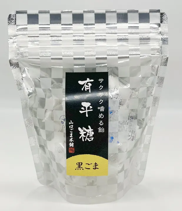 「ありへいとう 黒ごま」は砂糖と水飴をあめ煮釜で高温に煮詰め、極限まで薄く延ばし、ごまを練り込んだお菓子です。 外はカリッと中はさくさく! 一つ一つ、丹精込めてつくり上げた飴職人の匠の味を、ぜひお楽しみください。