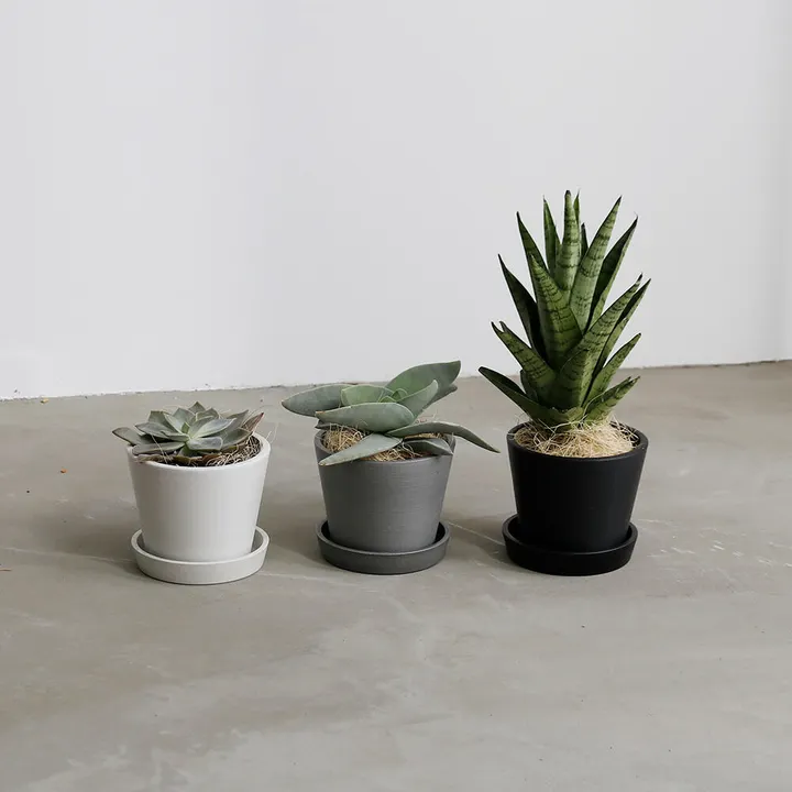 環境にやさしいエコフレンドリーなフラワーポット。 ストーンパウダーやウッドパウダーに、リサイクルプラスチックをミックスして形成された自然環境に配慮したサスティナブルなポットです。 天然素材を融合した原料を用いることでより自然に近い風合いを表現していますので、 どんな植物とも合わせやすく、自然な雰囲気で植物が飾れます。 陶器とは比較にならない軽さと丈夫さが好評で、屋内はもちろん屋外でも手軽に持ち運びが可能。 水受けのお皿とセットでの販売なので、統一感も演出できるアイテム展開となっています。 全4サイズ、3色展開。 お部屋やお庭にやわらかい印象を与えたい時や清潔感を出したい時、 またキリっと引き締めた印象を演出した場合など、自分好みのテイストで色をお選びいただけます。 【インテリア】【ガーデン】【ガーデニング】【プランター】【植木鉢】【鉢】【エシカル(エコ素材)】【サスティナブル】【X2】
