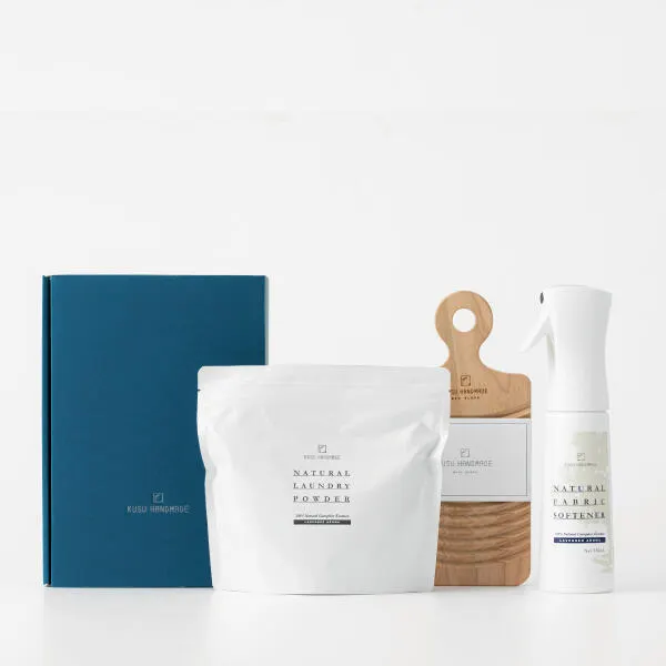 【セット内容】KUSU HANDMADE くすのき 洗濯板 1枚、KUSU HANDMADE 洗濯石けん 450g 1パック、KUSU HANDMADE カンフル&ラベンダー アロマ柔軟仕上げ剤ミスト 350ml 1本。 日本製 箱サイズ:D260×W190×H90mm、重さ:約1,244g