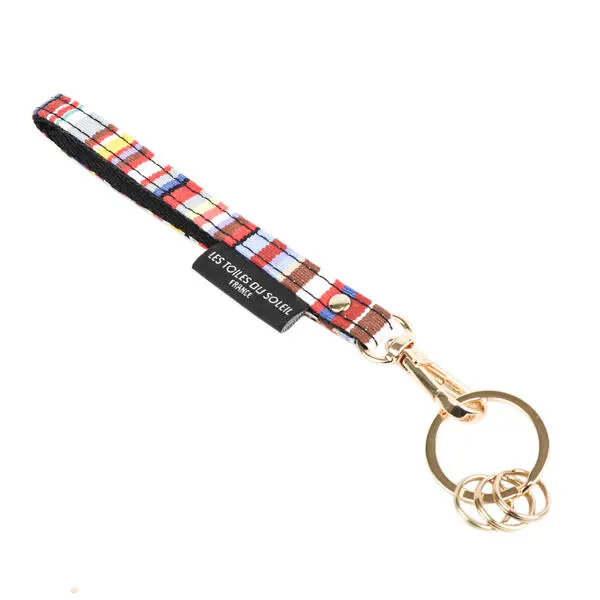 南フランスの伝統織物ブランド ショートストラップS Sunbrella素材 サンブレラ キーホルダー 褪色耐性 防カビ (Gold × トム マルチ/TOM Multi)