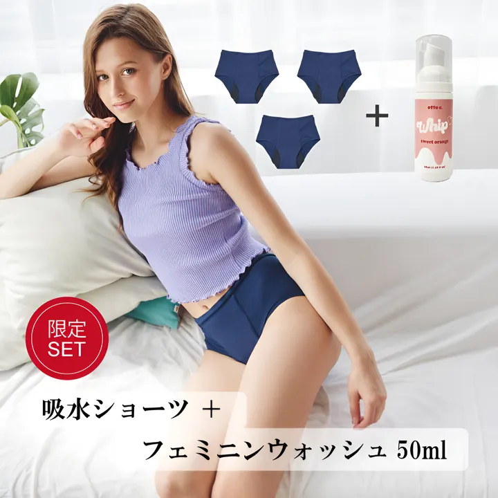 【初回注文限定】otte c.吸水サニタリーショーツ+フェミニンウォッシュ 【限定】L×3枚(ネイビーのみ)+フェミニンウォッシュ50ml セット