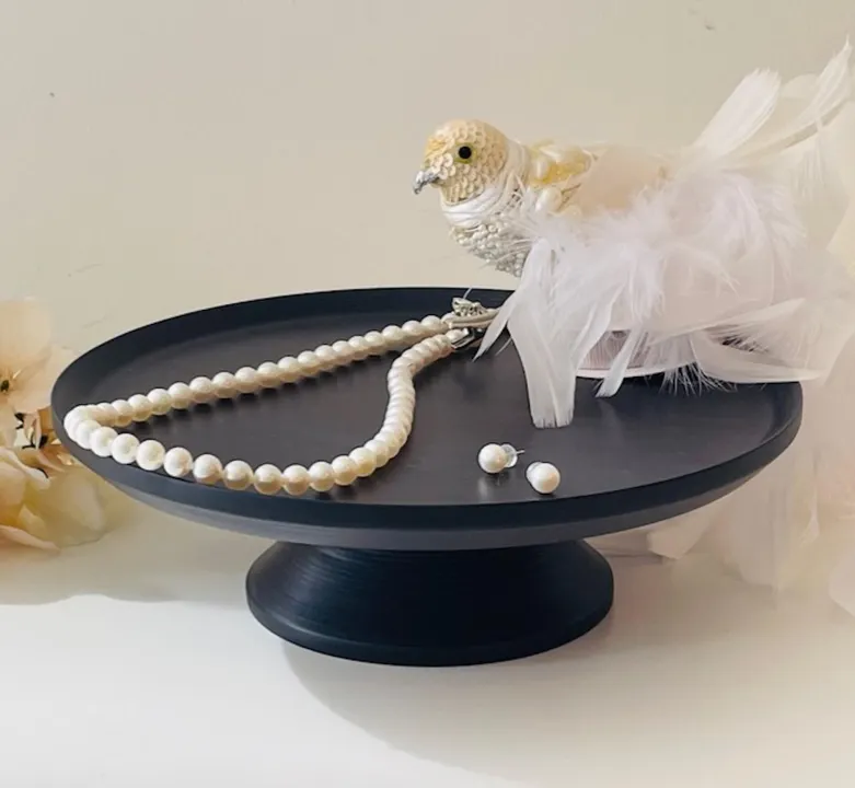 ブナの木が持つやさしい質感と、柔らかな温もりが感じられるケーキスタンドです。 オードブルやスイーツ、フルーツなどを載せて食卓を華やかに彩ります。 アクセサリーや身の回りのものを置くハイトレイとして、またディスプレイスタンドとしてもお使いいただけます。 高さがあるのでメリハリのある空間が演出できるアイテムです。 サイズ(mm):φ210×H65 カラー: ブラック 素材:天然木(ブナ材、突板貼りMDF) ウレタン塗装仕上げ 原産国:日本 ※ 料理等を直接盛り付けてご使用になる場合は、口に入れられる程度の温かさ(約60℃まで)のものにしてください。 ※ 使用後は柔らかいスポンジに食器用洗剤をしみ込ませて洗い、すぐに柔らかい布で水気を拭き取るようにしてください。破損の原因となりますので水に浸さないようご注意ください。 ※ 限りある資源を大切にしロスを減らすために、材料の選別をせずに製作しています。杢目や節、色みなど風合いが異なる天然木ならではの表情をお楽しみください。 ※ 手作業で製作しているため表記サイズより若干の誤差が生じる場合があります。