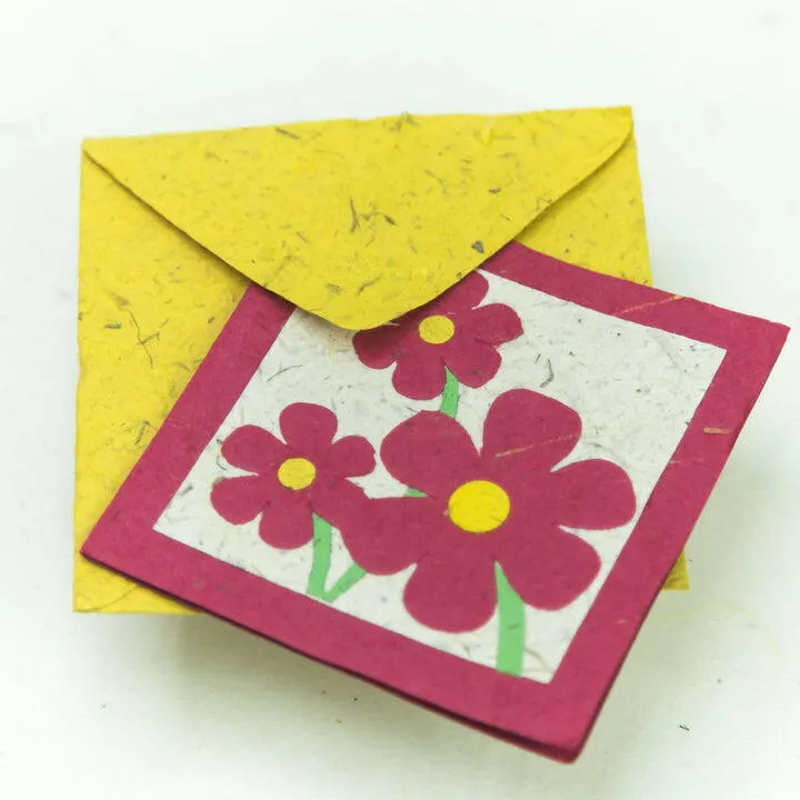 【封筒付きカード】ゾウのpooからできたエシカルな紙! 『 プープーペーパー』 カラフルな花柄と蝶柄 グリーティングカード Three Pink Flowers