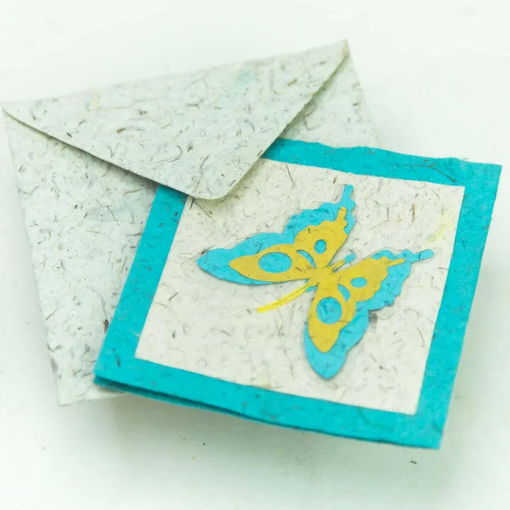 【封筒付きカード】ゾウのpooからできたエシカルな紙! 『 プープーペーパー』 カラフルな花柄と蝶柄 グリーティングカード Blue / Yellow Butterfly