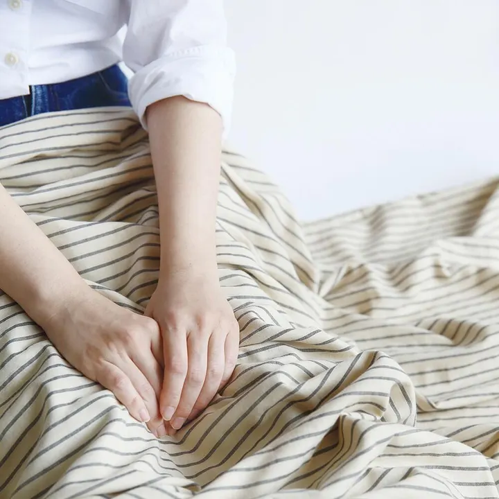 ダブルガーゼのクロスは、ほど良い柔らかさと厚みを兼ね備えているので、スローケットとしても、キッズシートにもぴったりです。 ガーゼ特有の肌触りと通気性も抜群です。 ストライプと無地で気分で使うことができ、普段の生活に彩りを与えてくれます。 【ファブリック】【ブランケット】【ひざ掛け】【お昼寝毛布】【D】