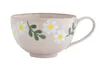 フラワーモチーフの中でも特に人気の高い、ミモザとカモミールをやさしいタッチで描きました。 テーブルに春の光が差したような、明るいトーンのフレッシュな雰囲気を纏っています。 朝食やティータイム、ちょっとしたおもてなしにも◎ 使っていると心まであたたかくなるような、とっておきテーブルウェアシリーズです。 丸いフォルムがお花の絵柄とぴったりマッチするスープマグカップ。 手の収まりがよい愛らしい形で、約440mlのたっぷり容量です。 具だくさんシチューやシリアルなども◎ ポットやプレートとセットにしてギフトにどうぞ。