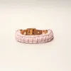 マクラメコードを編み込んで作られたおしゃれでナチュラルなデザインのアイテムです。 マクラメコードの編み込みは、自然な風合いと耐久性があり、コットン素材は肌触りが良く、犬の首にやさしくフィットします。編み込まれたコードの模様が特徴であり、独自のスタイルと個性を与えます。 パラコード2本を芯に編み込んでいるので、強度もしっかりしています。 おしゃれなデザインと、ナチュラルなカラーパレットや、レザーベルトが愛犬に優雅でスタイリッシュな印象を与え、美しい編み込み模様が、愛犬の首元を飾り立てます。 〈color〉 gray/pink/black ▼お手入れ方法 基本的には中性洗剤とぬるま湯を染みこませたタオルでたたくように汚れを拭き取ります。 仕上げにぬるま湯ですすぎます。 すすいだ後は、全体をタオルなどでくるんでぽんぽんとたたき、金具部分の水分は念入りに拭き取って下さい。 レザーの汚れが気になる場合は、レザー用コンディショナーをお使い下さい。 ※大切な愛犬の安全を守るために、リードや首輪の定期点検をお願いいたします。 犬具は消耗品であります。ご使用前に、リードや首輪の結び目、バックル、ナスカン、および素材の状態を注意深く確認してください。 摩耗や亀裂、異常なくぼみがないかをチェックすることもお忘れなくお願いいたします。 リードや首輪に異常な箇所がみられる場合は、使用を止め、速やかに交換してください。