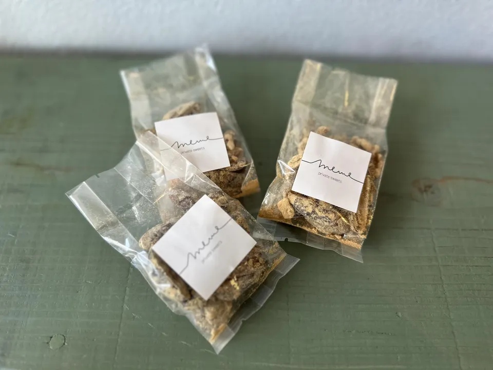 meme(ミイミイ)は【秘密】【内緒】そして、me【私!】という意味。 お客様それぞれのプライベートな時間を、ナチュラルなお菓子と一緒に過ごしてもらいたいです。