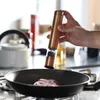 スイッチを押すだけで誰でも簡単にスパイスを挽ける「atomico(アトミコ)ソルト&ペッパー電動ミル」電動式なので料理中も手を休めることなく、さっと片手で挽きたての新鮮なスパイスを楽しめます。サビの心配がなく岩塩も挽けるセラミック製の刃なので、ブラックペッパーの実でも難なく快適に挽けます。摩擦熱が生じにくいため、熱で飛びやすいスパイスの香りを保ちます。先端のダイヤルを捻るだけで、粗いものから細かいものまで、挽き方を自在に調節出来ます。料理に合わせて、お好みの挽き具合をお楽しみ下さい。専用の収納台がついているので、キッチンや卓上のよく使う場所に置いておけます。本体はステンレスの質感と落ち着いたカラーリングで、食卓をちょっぴり上品に演出します。スリムでコンパクトな形状なのに充鎮量は、たっぷり挽ける25g。スパイスの継ぎ足しを頻繁に行わなくていいので、扱いやすく、気軽に使えます。※入れられる量は、スパイスの形状によって変わります。
