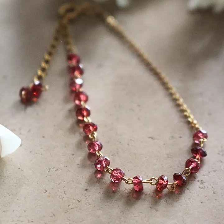 気品のある深い赤は、ガーネット独特の色。 光を集めキラキラと輝きます。 果実のようなガーネットは手元を彩り、 目をやるたびに小さな幸せを感じるかもしれません。 アジャスター先端のペアの天然石が 動きに合わせて揺れる様もかわいらしく、 お守りのように身につけたい美しいブレスレットです。 ◆次回の入荷は未定です。現在のところ在庫限りの商品となります。 ~天然石のブレスレット~ 自然が長い年月を経て創り出した美しい天然石の魅力を、 最大限に感じられるようなブレスレット。 ご自分がピンとくるお気に入りの天然石が、 まるでお守りのようにも感じられるかもしれません。 日々の中で、身につけるたびに小さな幸せを感じられる。 そんなアイテムを揃えています。 ~素材へのこだわり~ RIVA GOSSIで扱っているアクセサリーの中で 基本的に、直接肌に触れるパーツ金属部分は ゴールド色は、14KGF(14Kゴールドフィルド) シルバー色は、SV925(銀92.5%/スターリングシルバー) これらの素材で制作しています。 直接肌に触れない部分に関してはメッキ素材を使用することもあります。 ページ内の原材料表示部分をご確認ください。 14KGF(14Kゴールドフィルド)とは、 かなり厚い層で14Kコーティングした素材で、 金属アレルギーを起こしにくいといわれています。 ※全ての方にアレルギーが起こらないわけではありません。 ほとんどはがれることはなく、 欧米などではポピュラーな素材です。 金メッキ素材よりも値がはりますが、 14K-18Kなどよりお求めやすく、 天然石のアクセサリーを、 より身近に楽しむことができます。 お客様に安心してアクセサリーを選んでいただけるように 素材にもこだわっています。 ◇天然石は自然が作り出したその特性上、個体差のあるものです。 可能な限り同様のイメージを保つよう選別しておりますが、 量産品ではないため、何卒ご理解くださいませ。