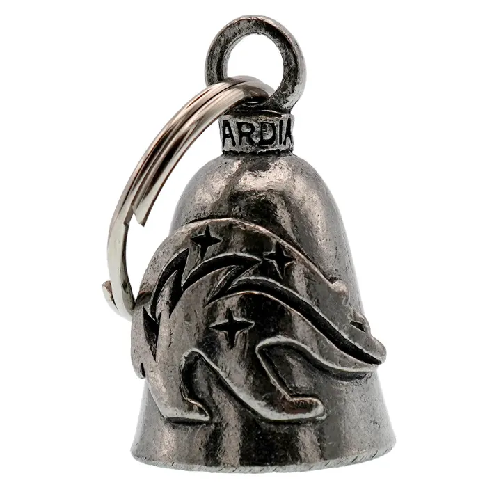 アメリカ製ガーディアンベル社製ガーディアンベルです。 MADE IN USA アメリカ製 交通安全 魔除け 御守り ガーディアンベル アメリカのライダーの間には、事故や、転倒の原因は「道路にひそむ悪魔」によるいたずらだという伝説があります。悪魔は走る者に悪戯やトラブルを運んできます。このベルは美しい音色で悪魔たちを追い払うと言われ愛されています。そんな悪魔のいたずらを防ぎ、御守りとなるのが、守護者のベルという意味を持つガーディアンベル。 日本でも鈴の音(ね)は神道では魔除けの音と言われています。ピューター製の鈴でいい音色でガーディアンベルはデザインも様々あります。 またガーディアンベルにまつわる伝説として、プレゼントとして送られたベルの効果は、自分で手に入れたものの2倍になると言われています。 それゆえに彼氏・彼女・友達・家族へのプレゼントとしての人気も非常に高まっています。 シルバーアクセサリーのようにおしゃれに装着できて素敵な音色を奏でるガーディアンベル。 バイカー以外にも自転車や旅・交通安全のお守りとしてお使いいただけます。 カバン・ランドセル・キーホルダー・ペットの首輪等に付けてお使いください!! ※タイラップ等でバイクのフレームにも簡単に取り付けできます。 アメリカンモデルだけではなく、旧車ファン、レプリカライダーまで、さらにバイクだけでなく、自転車や車にもピッタリな御守りとなっています。 アクセサリーとしても人気で、アイディア次第で車体だけでなく、キーホルダーや鞄など、どこにでも付けておしゃれに楽しめます。
