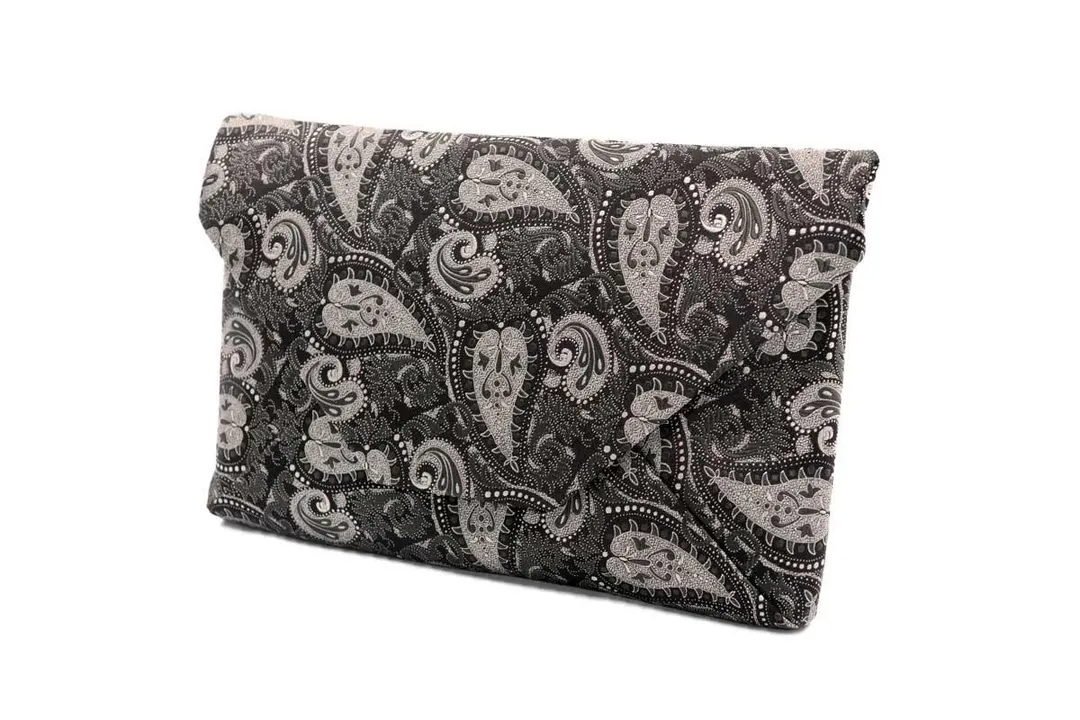 重厚なペイズリーのクラッチバッグ/西陣織シルク・数寄屋袋・和風クラッチ・B5サイズタブレット対応・レディース・日本製 灰ペイズリー