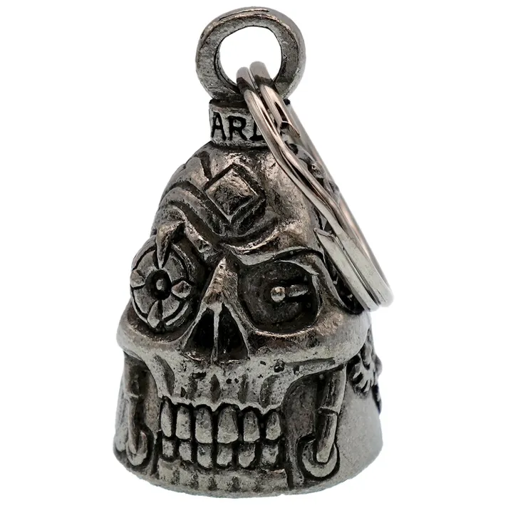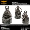 アメリカ製ガーディアンベル社製ガーディアンベルです。 MADE IN USA アメリカ製 交通安全 魔除け 御守り ガーディアンベル アメリカのライダーの間には、事故や、転倒の原因は「道路にひそむ悪魔」によるいたずらだという伝説があります。悪魔は走る者に悪戯やトラブルを運んできます。このベルは美しい音色で悪魔たちを追い払うと言われ愛されています。そんな悪魔のいたずらを防ぎ、御守りとなるのが、守護者のベルという意味を持つガーディアンベル。 日本でも鈴の音(ね)は神道では魔除けの音と言われています。ピューター製の鈴でいい音色でガーディアンベルはデザインも様々あります。 またガーディアンベルにまつわる伝説として、プレゼントとして送られたベルの効果は、自分で手に入れたものの2倍になると言われています。 それゆえに彼氏・彼女・友達・家族へのプレゼントとしての人気も非常に高まっています。 シルバーアクセサリーのようにおしゃれに装着できて素敵な音色を奏でるガーディアンベル。 バイカー以外にも自転車や旅・交通安全のお守りとしてお使いいただけます。 カバン・ランドセル・キーホルダー・ペットの首輪等に付けてお使いください!! ※タイラップ等でバイクのフレームにも簡単に取り付けできます。 アメリカンモデルだけではなく、旧車ファン、レプリカライダーまで、さらにバイクだけでなく、自転車や車にもピッタリな御守りとなっています。 アクセサリーとしても人気で、アイディア次第で車体だけでなく、キーホルダーや鞄など、どこにでも付けておしゃれに楽しめます。