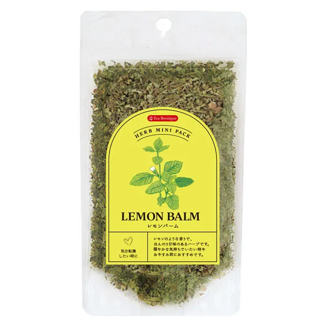 ハーブミニパックシリーズは、さまざまな種類のハーブを手軽にお楽しみいただけるラインナップ。袋にはつり下げ可能なフック穴が付いています。 レモンバームは、レモンのような香りで、ほんのり甘味のあるハーブです。穏やかな気持ちでいたい時やおやすみ前におすすめです。 ハーブティーの他、お風呂、ハーブ染め、ハーブピロー等に幅広くご利用いただけます。 ▼美味しい淹れ方 温めたティーポットに、ティースプーン1杯(約1.5g)のハーブを入れ、沸騰したてのお湯(1人分150ml)を注ぎます。 3分蒸らして温めたカップに茶漉しで漉しながら注ぎます。 *浸出時間はお好みで調整してください。 *アイスティーの場合は半分のお湯の量で浸出し、氷のたっぷり入ったグラスに一気に注ぎ入れてください。 おすすめブレンド ■食べ過ぎた時に レモンバーム ③:レモングラス ③:ペパーミント ① 取扱上の注意 熱湯のお取り扱いには十分ご注意ください。