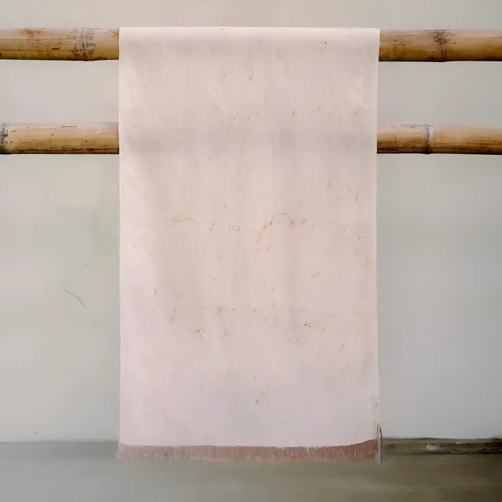 Fabric|繊維:Handwoven Eri silk blended with Tencel TM(シルク30%、テンセル70%) Dyeing|染色:Indigofera Leaves(ホワイト×ネイビー:インディゴ染色)Mahogany Bark(ホワイト×ブラウン:マホガニー樹皮)