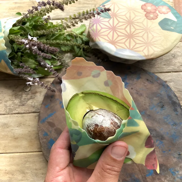繰り返し洗って使える!地球に優しいみつろうラップ。余った野菜を包んだり、器のフタに。カラフルな柄でキッチンを楽しくしながら「もったいない」を減らします