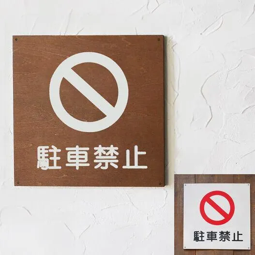 木製プレート 駐車禁止 38cm幅 ダークブラウン