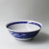 染付の吉祥紋の龍・雷紋が描かれたTHEラーメン丼。丼に特化した窯元で製造された定番です。 ■カネ定製陶/土岐市 明治2年、岐阜県土岐市に創業。駄知の自然溢れる山の上に窯を構え、四季を感じながら陶磁器製造をされている駄知をリードする量産メーカー。「量産の中にも愛情を!」をモットーに職人による筆巻きや施釉を行い、手仕事を一手間加え他社との差別化を図っています。創業より「どんぶり」に特化し時代とニーズに応え続けています。