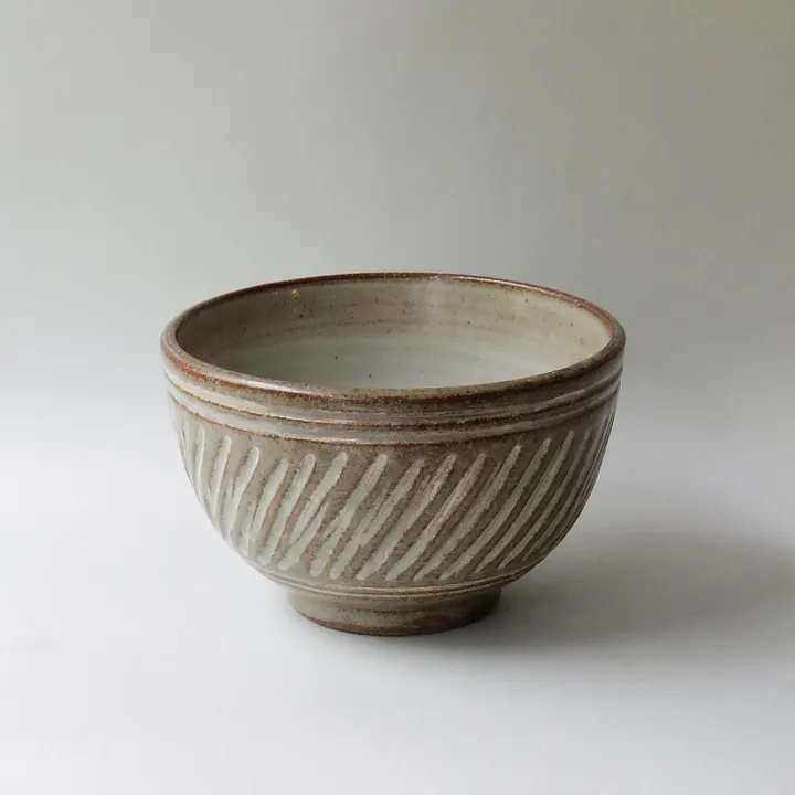 熟練の職人が削ぎと言われる彫りを入れ、さらに化粧土を埋め込んだ象嵌という技法が施された丼。土と職人の技術が詰まった美濃焼らしい丼です。海鮮や天ぷらなどのご飯丼に合う小振りなサイズで重宝します。 ■天狗窯/土岐市駄知 大正中期創業 瀬戸から駄知町へ向かいに住むだ陶工・加藤家の流れを汲む、老舗の窯元。ろくろや鋳込み成形、手描き職人の技を組み合わせ、新たな味わいのある器を続けています。